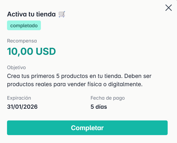 Una misión es una tarea que puedes completar para recibir una recompensa en dinero, que será enviada directamente a tu billetera en eSponsor.